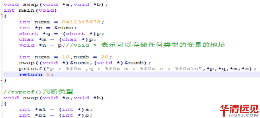 void *q ;//表示無類型的指針,可以存儲任何類型的地址,存儲時轉換成void *