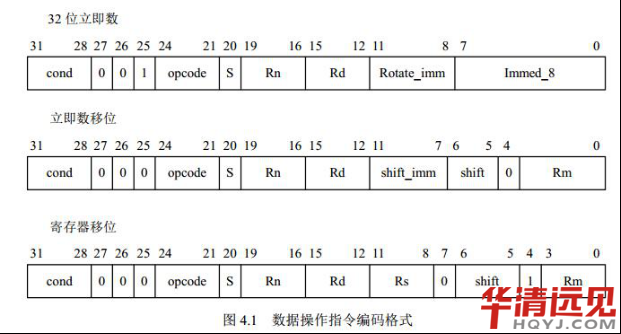 注意:12bit表示立即數,有輪回規則20bit,S表示是否影響cpsr寄存器標志位2、