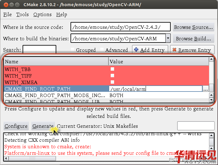 首先要看Opencv在嵌入式arm開(kāi)發(fā)的移植過(guò)程的話,網(wǎng)上有很多這方面的移植編譯方法都是比較老的,而且多數(shù)都是針對(duì)OpenCV 1.0的,他的方法很麻煩,很容易出錯(cuò),在這里我來(lái)說(shuō)一下我的方法,沒(méi)有那么麻煩,都是盡可能利用現(xiàn)成的工具,盡量圖形化界面配置操作,方便編譯配置。