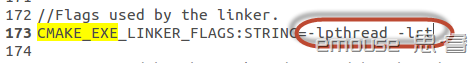 此時(shí)需要修改CMakeCache.txt,CMAKE_EXE_LINKER_FLAGS原來(lái)為空,加上-lpthread -lrt