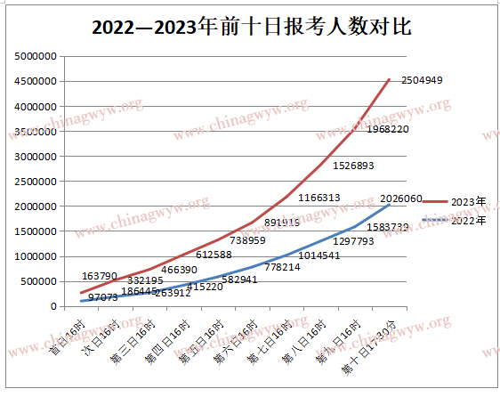 2022-2023年前十日公務員報考人數(shù)對比