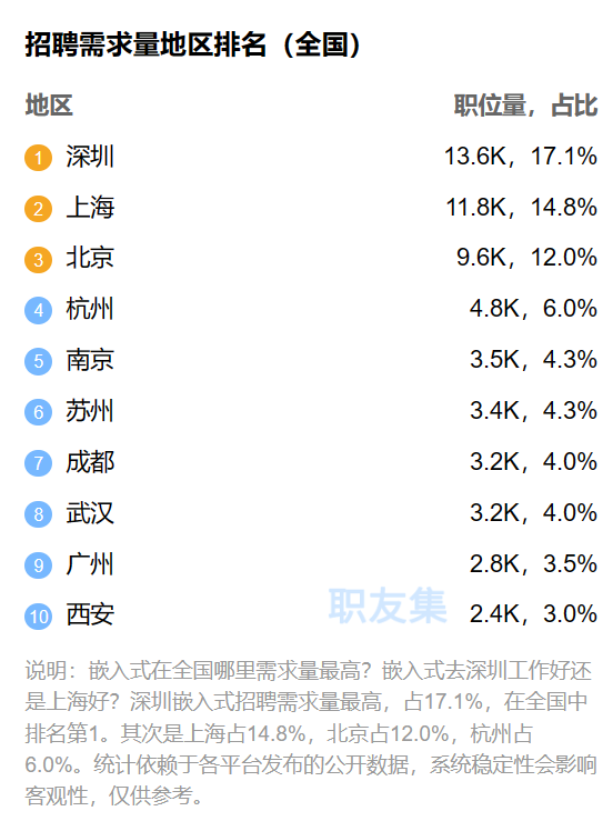 無論是一些知名公司:華為、中興、大疆、深信服、海康威視等,還是新興AI獨角獸企業(yè):地平線機器人、圖森未來、商湯科技、云從科技,或者無人駕駛獨角獸公司等,都有嵌入式軟件開發(fā)的職位。