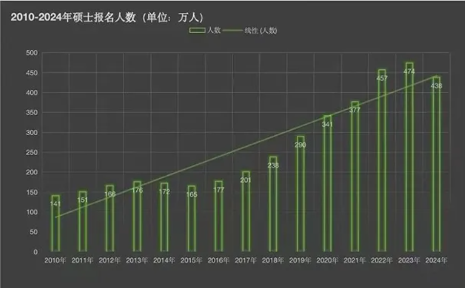 而2024 年全國碩士研究生考試報(bào)名人數(shù)為 438 萬