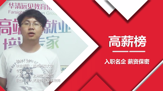 姓名:李* 學校:武漢工程大學 專業:自動化 學歷:本科 來華清學習嵌入式是我考慮了很久的結果,我喜歡嵌入式這個行業,喜歡編程這件事,大學在參加飛思卡爾智能車比賽的時候也學習過一些相關的知識。但直到今年面臨就業的壓力才來學習,但仍不…