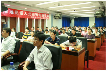 2010年8月21日華清遠見嵌入式技術系列講座—DSP/FPGA高級技術專題研討會在北京航空航天大學柏彥大廈三層報告廳如期舉行,共有100多人參加了本次專題技術講座,雖然北京當天下著大雨,但依然未能阻止大家高漲的學習熱情,講座還未開始時,整個報告廳就被擠得滿滿當當。到場的眾多DSP/FPGA的愛好者和三位華清遠見的資深講師一起共同討論了有關DSP/FPGA領域內的行業發展動態和新技術。