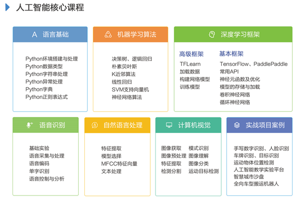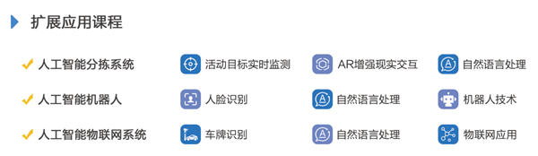 整個課程體系包括基礎課程、人工智能核心課程、擴展應用課程三大部分。