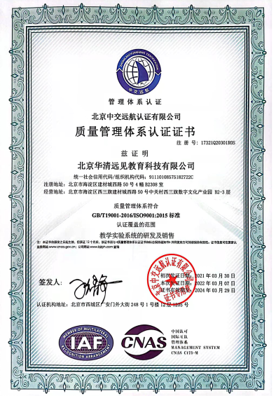 近日,再傳喜訊,北京華清遠(yuǎn)見教育科技有限公司順利通過ISO9001質(zhì)量管理體系全面嚴(yán)格的評審工作,成功獲得ISO9001質(zhì)量管理體系認(rèn)證證書。