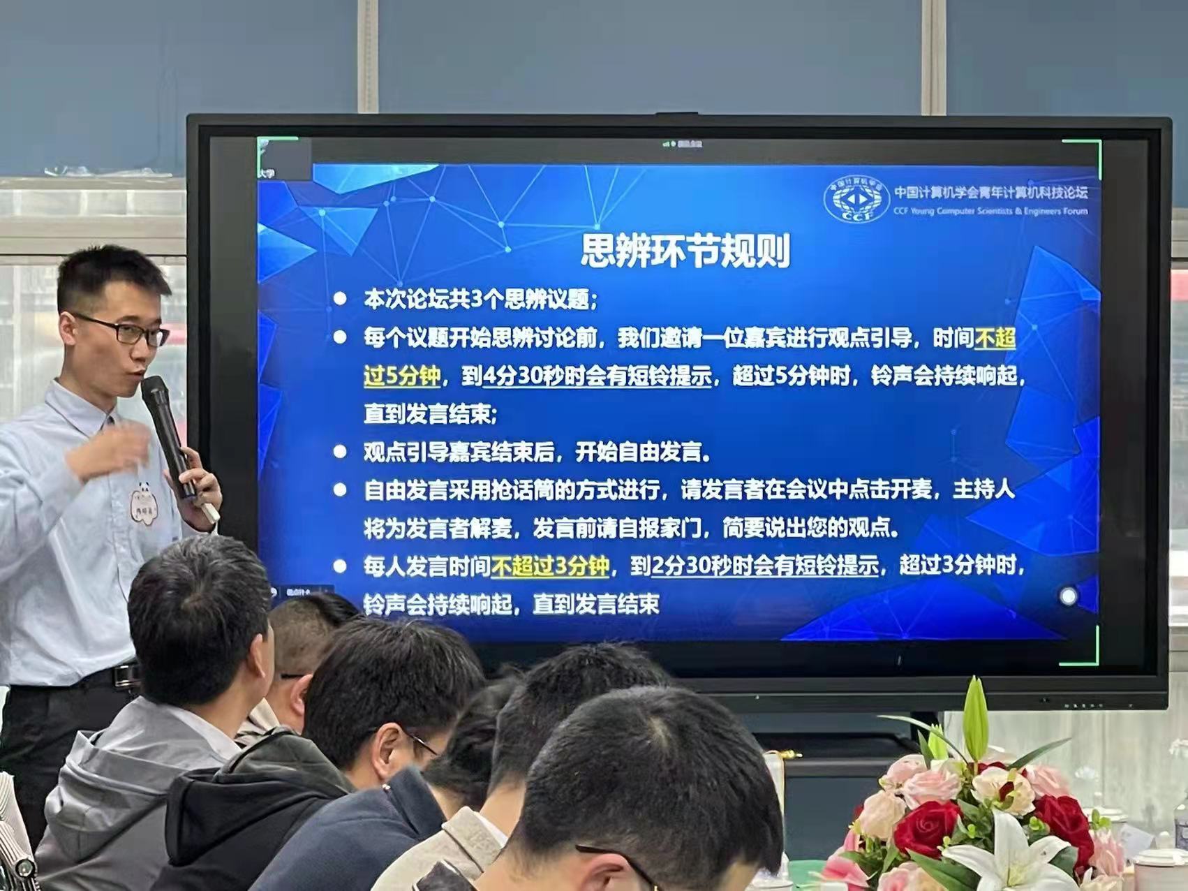 論壇開始,CCF YOCSEF成都2021-2022年主席、西南石油大學計算機科學學院教授彭博分別講解了CCF YOCSEF的歷史、構成和宗旨,介紹了舉行本次活動的初衷、議程和規則。此次論壇分為嘉賓引導發言和互動思辨兩個環節。在引導發言環節,來自成都通甲優博科技責任有限公司,聯合創始人&CTO龍學軍、新網銀行,信息科技部大數據中心負責人陳思誠、深圳市網聯安瑞網絡科技有限公司,成都區域中心主任賈宇等分別圍繞著論壇主題,作了《人工智能技術在智慧交通領域中的應用探索》、《銀行數據智能建設與思考》、《AI項目開發的挑戰與應對》等主題演講。