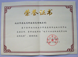 2012年9月,是電子工業(yè)出版社成立30周年的紀(jì)念日,為了更好地回顧和展示三十年來在出版領(lǐng)域內(nèi)所取得的輝煌成果,電子工業(yè)出版社在北京舉行了隆重的慶祝活動,并專門邀請多年合作的眾多作者及合作伙伴,共同組織了“優(yōu)秀作譯者、優(yōu)秀出版合作伙伴聯(lián)誼會”(相關(guān)活動介紹頁面//www.bookdao.com/article/48135/ )。聯(lián)誼會活動現(xiàn)場,還專門表彰多年來對出版社發(fā)展做出突出貢獻的作譯者和出版合作伙伴。華清遠見憑借在電子工業(yè)出版社出版的優(yōu)質(zhì)的嵌入式、移動開發(fā)及物聯(lián)網(wǎng)專業(yè)領(lǐng)域內(nèi)的系列技術(shù)圖書和高校教材,榮獲“電子社優(yōu)秀出版合作伙伴”這一重要榮譽。