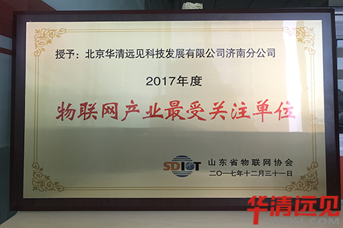 北京華清遠見科技發展有限公司榮獲“山東省2017年度物聯網產業最受關注單位”