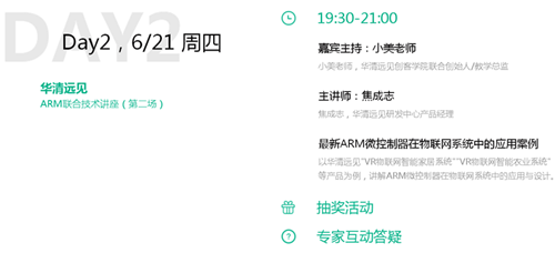 此次技術講座主題為:ARM引領智能物聯新時代/最新ARM微控制器在物聯網系統中的應用案例/ARM虛擬原型技術與下一代SoC設計/最新ARM+Android智能終端設計案例。講座為期4天,分別是6月19日、6月21日、6月26日、6月28日。