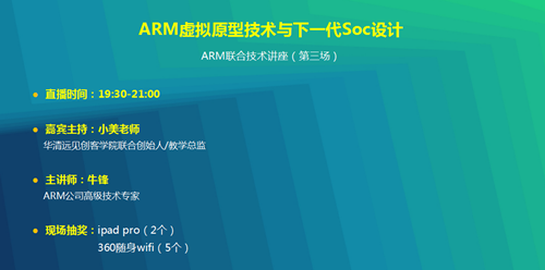 2018年6月26日,第七屆華清遠見-ARM聯合大型技術講座(第三場)線上直播圓滿結束!說起本場講座可謂是紅旗招展、人山人海,觀看直播人數達500人以上。你問為什么如此火爆?那還用說嗎,當然是咱們的主講師有魅力啦!本場講座主題為ARM虛擬原型技術與下一代Soc設計,主講人是ARM公司高級技術專家牛鋒老師。
