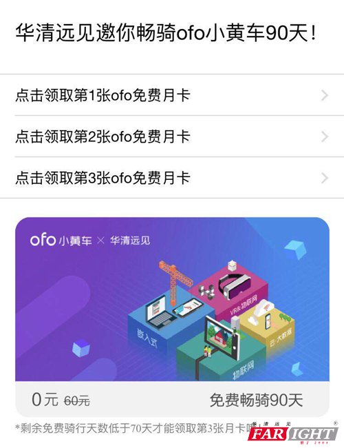 華清遠(yuǎn)見(jiàn)聯(lián)名ofo送你90天免費(fèi)月卡 騎著小黃車去學(xué)習(xí)