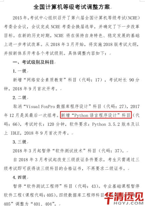 (1) 全國計算機等級考試(NCRE)從 2018 年 3 月開始,按新體系開考各個考試級別,具體調整內容如下: