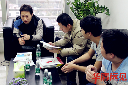 16:00鹿山學院10余名學員和倪主任,曹主任在會議室進行交流。倪主任在會上慰問他們來華清的學習狀況以及住宿環境,是否適應和不滿的?學員們笑著回答:只是學習任務重點,都挺好的。談及到學習倪主任微笑的臉也變得嚴肅起來了語重心長的對每一個學員說:“同學們你們既然選擇來華清繼續深造就應該做吃苦的準備,想要四個月獲得一份滿意的offer一份高薪的工作。同學們就應該吃得苦中苦,我希望同學們遇到困難不要放棄,也不要覺得累。因為風雨過后方可遇見彩虹。”一番暖心的話也迎來了眾學員的掌聲。
