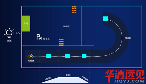 ③自平衡車在光源的引導下,通過障礙區進入停車區并到達車庫。自平衡車必須在兩個 障礙物之間通過且不得與其接觸。