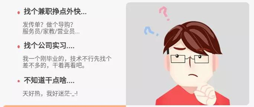 先說暑期實習兼職。就目前來看,是可以掙到一部分的錢,但很多都是哪時間來換錢,往往大家都最容易犯的一個錯誤就是低估時間的價值,如果在同樣的時間,換成參加實訓學習,可能結果就會有很大差距。