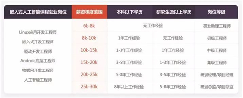 嵌入式人工智能實訓營,涉及技術知識多,就業(yè)面非常廣,且應用領域也極為廣泛,企業(yè)眾多,所以學生畢業(yè)后可從事的領域及崗位非常多,而且也都是現在及未來在大的AIoT時代非常火的一些高端研發(fā)崗位,這些崗位包括: