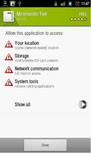 普通的安卓用戶卻可能不知道該如何著手解決自己擔(dān)心的安全問題,為了避免手機中木馬,Lookout 給出一些安全建議: 經(jīng)常查話費單,避免話費欺詐反復(fù)核查網(wǎng)站網(wǎng)址的正確性不要輕易給應(yīng)用授權(quán),保護個人隱私注意手機 NFC、WiFi 或藍牙的開關(guān)狀態(tài)安裝安全應(yīng)用程序及時升級手機系統(tǒng)。 華清遠見android培訓(xùn)機構(gòu)也為朋友們的安卓設(shè)備安全來支上幾招,你可以運用下面一些要點,發(fā)揮設(shè)備的功能、在其他用戶當中加強安全意識,重要的是,提高安全: 1. 在你安裝遇到的任何應(yīng)用程序之前,務(wù)必要閱讀許可協(xié)議的應(yīng)用程序訪問請求。這個常常被忽視的協(xié)議含有特定權(quán)限許可方面的寶貴信息,這些權(quán)限許可涉及應(yīng)用程序如何訪問你的設(shè)備。這些許可請求(如訪問GPS、聯(lián)系人資料、外部存儲介質(zhì)等)都直接編寫到安卓清單文件。要留意應(yīng)用程序聲稱進行什么操作、實際上進行什么操作。計算器應(yīng)用程序很可能不需要訪問互聯(lián)網(wǎng)或你的個人信息,所以要仔細閱讀那些許可協(xié)議。