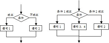 分支結(jié)構(gòu)的執(zhí)行過程如圖1.2所示,在這種結(jié)構(gòu)中,程序會(huì)根據(jù)某一條件的判斷來決定程序的走向,比如當(dāng)該條件成立時(shí)執(zhí)行語句1,當(dāng)該條件不成立時(shí)執(zhí)行語句2。另外,也有可能會(huì)有多種條件的情況,比如,當(dāng)條件1成立時(shí)執(zhí)行語句1,當(dāng)條件2成立執(zhí)行語句2,在其他情況下執(zhí)行語句3、4等。