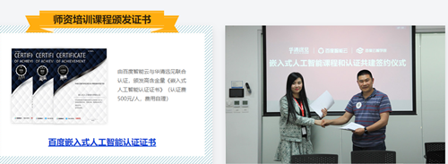 頒發由百度智能云與華清遠見聯合認證的《嵌入式人工智能認證證書》。