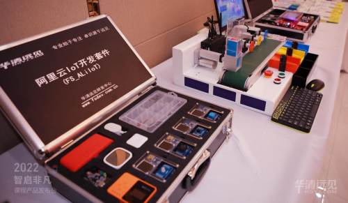 研發(fā)中心重磅發(fā)布了HaaS EDU K1、FS-GDRV、FS-Hi3861三款開源智能硬件,分別支持 AliOS Things、RT-Thread、HarmonyOS三款不同操作系統(tǒng)下的開發(fā)學(xué)習(xí)。接下來發(fā)布的阿里云IoT開發(fā)套件、天貓精靈IoT開發(fā)套件、天貓精靈應(yīng)用技術(shù)實訓(xùn)臺是三款專為高校教學(xué)打造教儀產(chǎn)品。比起基礎(chǔ)試驗箱,這三款產(chǎn)品可以連接的無線傳感網(wǎng)絡(luò)包括Wi-Fi 、BLE MESH、天貓精靈,同時也可以實現(xiàn)阿里云IoT的物聯(lián)網(wǎng)云接入。值得一提的是,在學(xué)員和企業(yè)最關(guān)注的頂層應(yīng)用開發(fā)層面,這三款智能硬件支持天貓精靈、釘釘、支付寶小程序的開發(fā),這填補了基礎(chǔ)試驗箱僅支持微信小程序開發(fā)的不足。