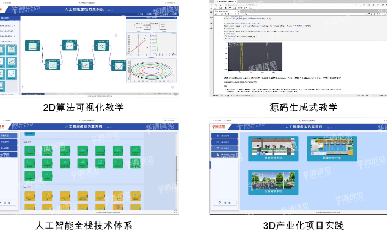 平臺采用可視化算法、代碼自動生成、3D應用場景案例實戰等教學模式,解決了算法難、編程難、應用場景難的問題。其自帶多種人工智能技術開發環境,突破了硬件部署實驗的局限,無限激發開發者的創新思維。可依據行業前沿與市場需求對平臺進行資源迭代,保障開發者所學所感皆為行業前沿,可廣泛用于個人開發學習、高校學科建設、企業員工培養等方向。