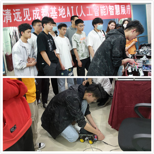 隨后,華清遠見成都中心的老師帶領同學們參觀了華清遠見成都中心的教室與教學環境,并走進華清遠見成都基地AI(人工智能)智慧展廳,為同學們講解并演示了智能物聯網系統、開源智能穿戴試驗箱、人工智能教學實驗平臺等多種設備。帶領大家感受眾多酷炫好玩高科技。同學們充滿了濃濃的興趣,圍繞在老師身邊認真聆聽。人工智能正在改變我們的生活和工作方式,華清遠見成都中心的技術老師也為同學們介紹了人工智能與信息處理技術,探討了人工智能給我們帶來的行業與就業機遇等問題。