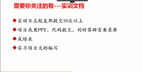 本次實訓課程以實操為重,重在提升在校生的動手能力。最終通過分組項目答辯的形式對學生們的知識掌握程度、知識運用能力、解決問題能力等進行考核。一方面希望全方位、多角度的培養學生主動學習能力和實踐能力,為就業打下堅實的基礎,另一方面也在鍛煉團隊配合能力。