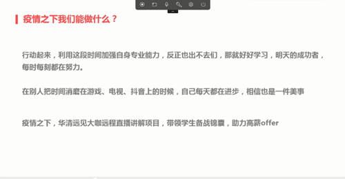 比物理隔離,更可怕的是精神隔離、知識隔離。停課不停學(xué),教學(xué)不延期,華清將繼續(xù)秉承著“做良心教育”的育人理念,啟動百萬高校在線助學(xué)計劃,陪伴中國高校大學(xué)生共克時艱,積極配合高校,提供線上教學(xué)及遠(yuǎn)程實訓(xùn)的強大支撐,堅定地與全國人民一起,共戰(zhàn)疫情。