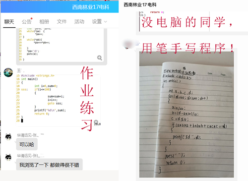 在學(xué)習(xí)過程中,西南林業(yè)大學(xué)學(xué)校領(lǐng)導(dǎo)也不時進(jìn)入直播間,關(guān)心同學(xué)們的學(xué)習(xí)情況和進(jìn)展,并給出相關(guān)的指導(dǎo)意見。空間的距離絲毫沒有影響小組成員間的合作和默契。密密麻麻的日志上,也承載著大家滿滿的收獲與喜悅!