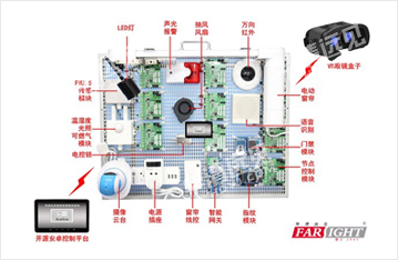 華清遠(yuǎn)見自主研發(fā)實(shí)訓(xùn)項(xiàng)目——智能家居+VR,采用微信公眾號、Android APP以及VR三種控制模式。用先進(jìn)的電子技術(shù)、傳感器技術(shù)、無線電技術(shù)、電力自動(dòng)化技術(shù)、計(jì)算機(jī)技術(shù)、網(wǎng)絡(luò)通訊技術(shù)、生物科學(xué)技術(shù),VR虛擬現(xiàn)實(shí)技術(shù)將與居家生活有關(guān)的各種設(shè)備有機(jī)地結(jié)合起來。避免了體積大,使用受局限的囧態(tài)。 適合用于物聯(lián)網(wǎng)、Android移動(dòng)互聯(lián)網(wǎng)、VR等專業(yè)實(shí)訓(xùn)。