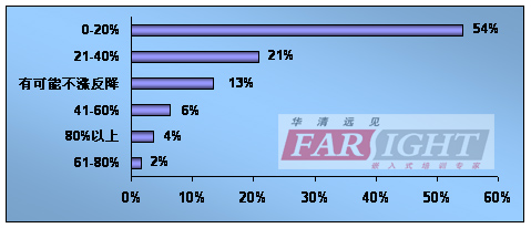 對于??來一年薪資漲幅的調查????54%參與調查的工程師表示漲幅??0-20%之間,???為??資漲幅在21%-40%之間的為21%,而選擇“有??能不漲反降”的??13%,其他漲幅較高的選項僅有很少一部分工程師選擇??2008年年終的經濟危機對???選項的調查產生了或???或少的影響,但??相???來講,還是比較樂???的??
