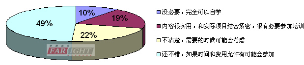 在談到???何看待培???這一話???時,接??70%參與調查的嵌入式從業人員,???參加培??都表示了較大程度的???可??19%的工程師表示在需要的時候可能會考慮,僅??10%的工程師表示希望通過??學來實現職業上的提升??