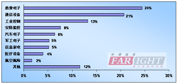 嵌入式應用???域極為廣泛,調查數??顯示,嵌入式產品應用多的三大領域??“消費電子、通信設???、工業控制”,所占比例分????24%??21%??13%,三大???域所占比例之和接??60%,特????消費電子領域,隨著3G時代的來臨,智能手機??件開發這一領域的發展前??更是??看好??