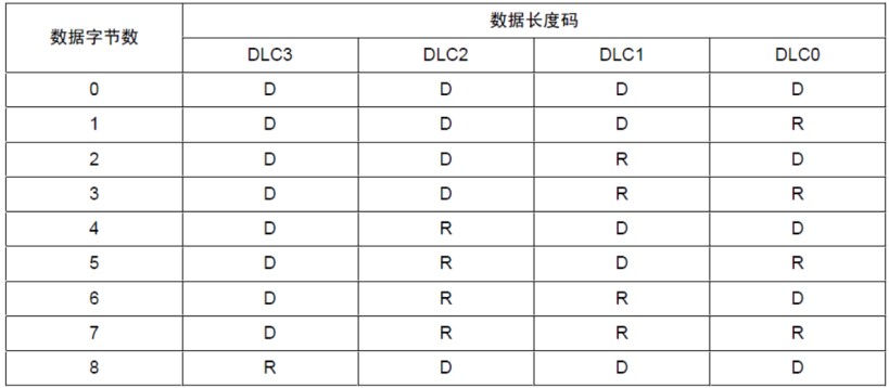 DLC同樣是4bit表示數據段的長度,對應的關系如下: