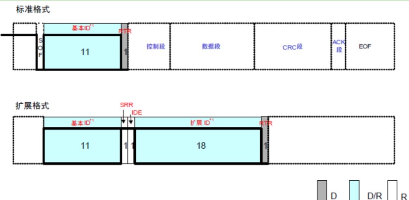 RRS(Remote Request Substitution):遠程請求替換位,即傳統CAN中的RTR位,CAN FD中為常顯性