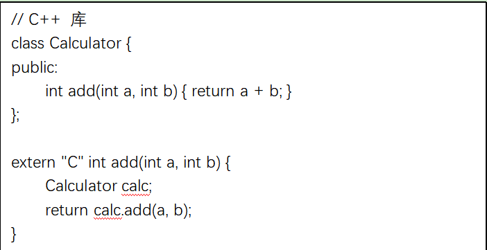 在多語言開發(如 Python 調用 C++)中,extern "C" 被廣泛用作橋梁。C++ 的復雜特性(如類、模板)無法直接暴露給其他語言,因此開發者通常會用 extern "C" 封裝一個簡單的 C 接口。例如: