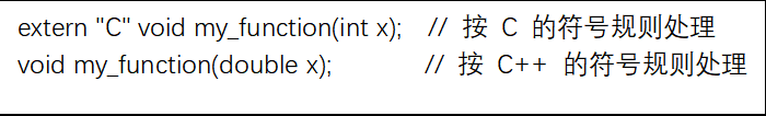 extern "C" 的作用是用于 解決 C++ 和 C 語言在符號鏈接規則(name mangling)上的差異,從而實現兩種語言之間的互操作。其核心功能是告訴編譯器按照 C 的符號規則 處理指定的函數或變量,而不是使用 C++ 的符號修飾規則。