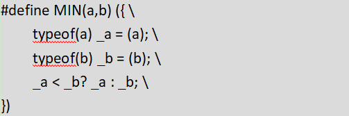 然而,上述基礎(chǔ)版本的 MIN 宏存在一些潛在的問題。其中一個就是類型安全問題。為了解決這個問題,我們可以使用 typeof 關(guān)鍵字(這是 GCC 編譯器的一個擴(kuò)展特性,如果使用其他編譯器可能需要考慮兼容性)來編寫一個更加健壯的 MIN 宏:
