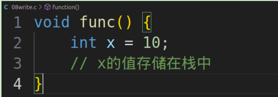 局部變量存儲:函數內部定義的局部變量也存放在棧中。