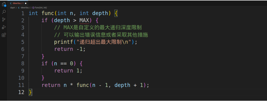當使用遞歸函數時,可以通過一個變量來記錄遞歸的深度。例如,在計算階乘的遞歸函數中: