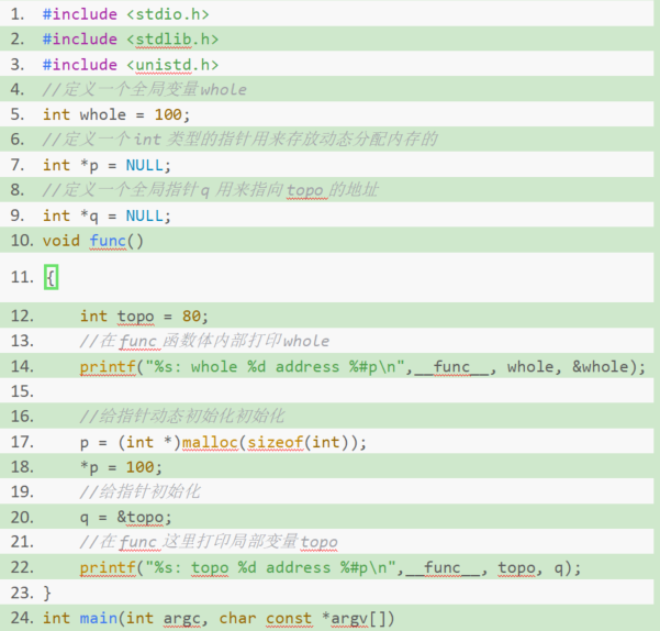 · 數據區(Data Segment):全局變量存儲在程序的靜態數據區(也稱為數據段)。這個區域在程序啟動時分配內存,并在整個程序運行期間保持有效。