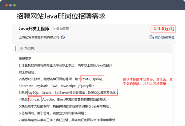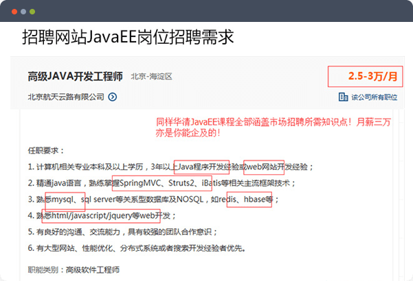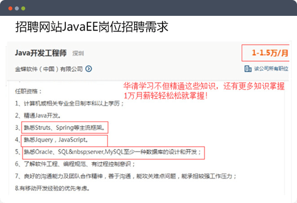 適合各種JavaEE工程師崗位招聘需求,就業面廣。