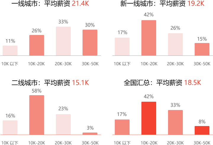 一線新一線薪資差距縮小,行業(yè)整體薪資漲幅快。