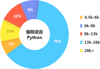 據(jù)統(tǒng)計,Python+人工智能開發(fā)工程師月薪13K-28K占比高達70%。而且Python作為一種簡單、易學又廣泛的編程語言,可從事的崗位有數(shù)十種以上。